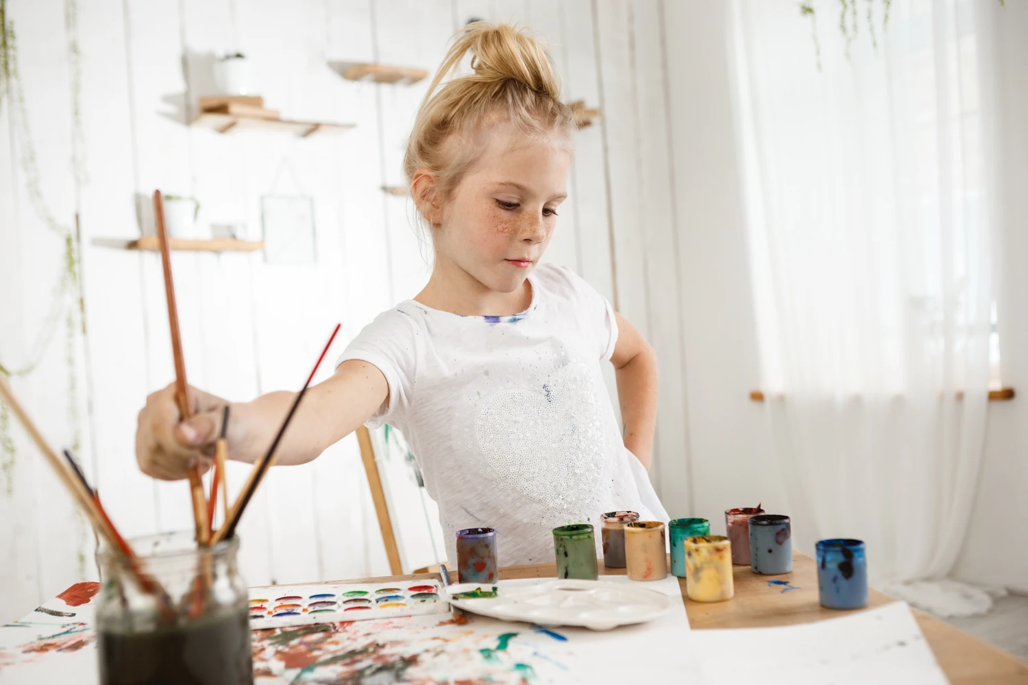 An diesem Tag steht auch das Farbenmischen im Fokus. Die frisch entstandenen Farben bieten die Grundlage für spannende Motive und lassen der Fantasie freien Lauf. Ob in der Darstellung von Natur oder in abstrakten Kompositionen.
