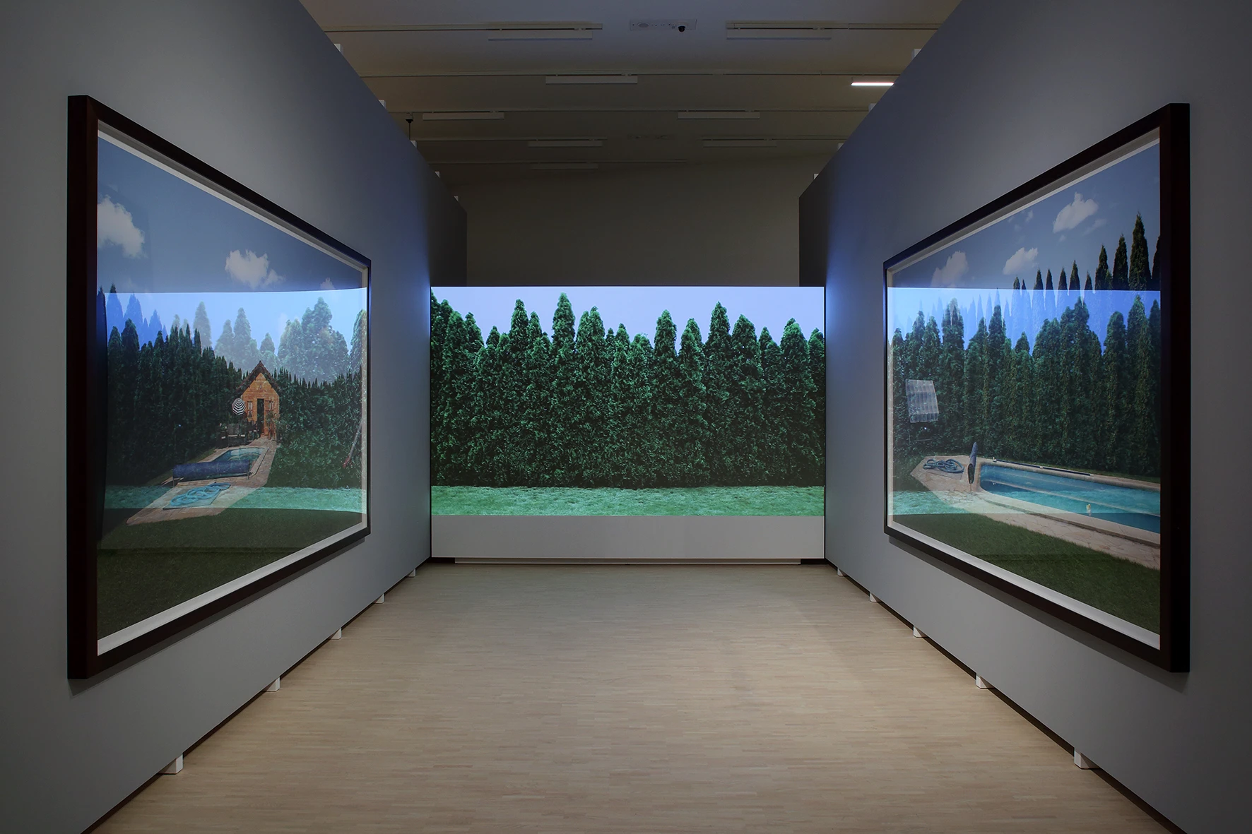 In our present day, however, the concept of a place of longing can also be interpreted beyond a tourist setting. For example, as a place of refuge for people fleeing their homes. This topical issue is addressed in several works, including expressive photographs by Ekaterina Sevrouk and a large-format fence installation by Iris Andraschek and Hubert Lobnig. The numerous works from the Lower Austrian State Collections are supplemented by private and public loans.